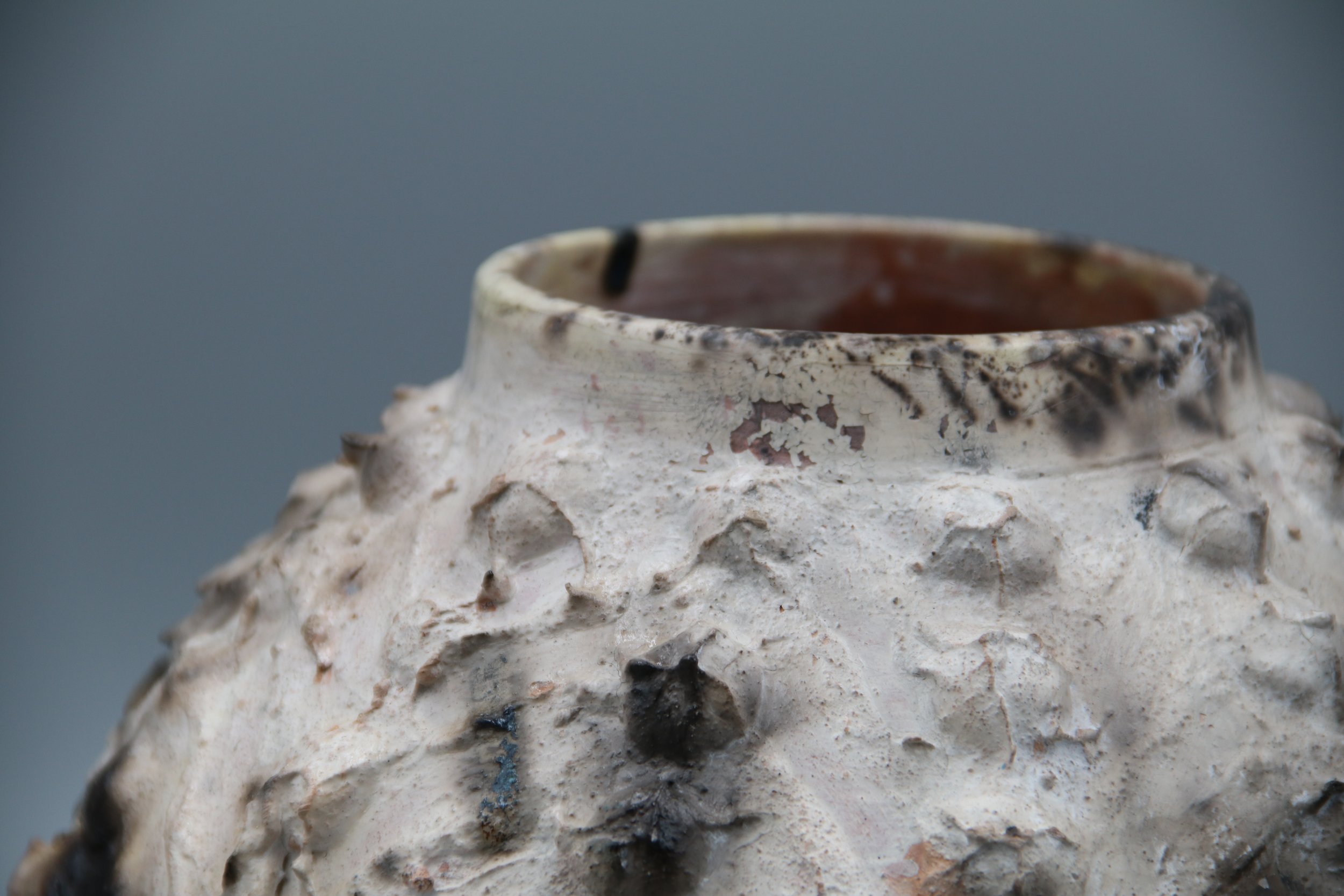 “This is one of the last pieces I've made before getting overwhelmed with teaching sculpture in the summer. I've been playing with texture and pattern more with the saggar fired vessels around this time. And I'm looking to more in the future along with a few other things I've been wanting to incorporate lately: egyptian paste, sprigs, etc.